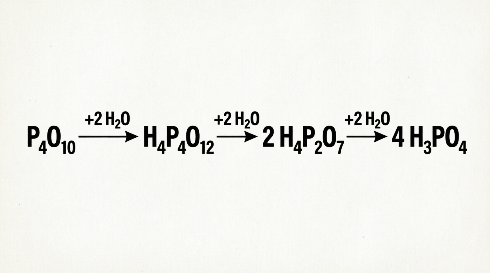 The principle behind this sensor is based on the fact that P2O5 (or better P4O10) is extremely hygroscopic - one of the most hygroscopic substances there is. 1) This means that all the moisture is basically absolutely absorbed into. P4O10 then forms polyphosphoric acids with water until phosphoric acid (H3PO4) is reached.2)