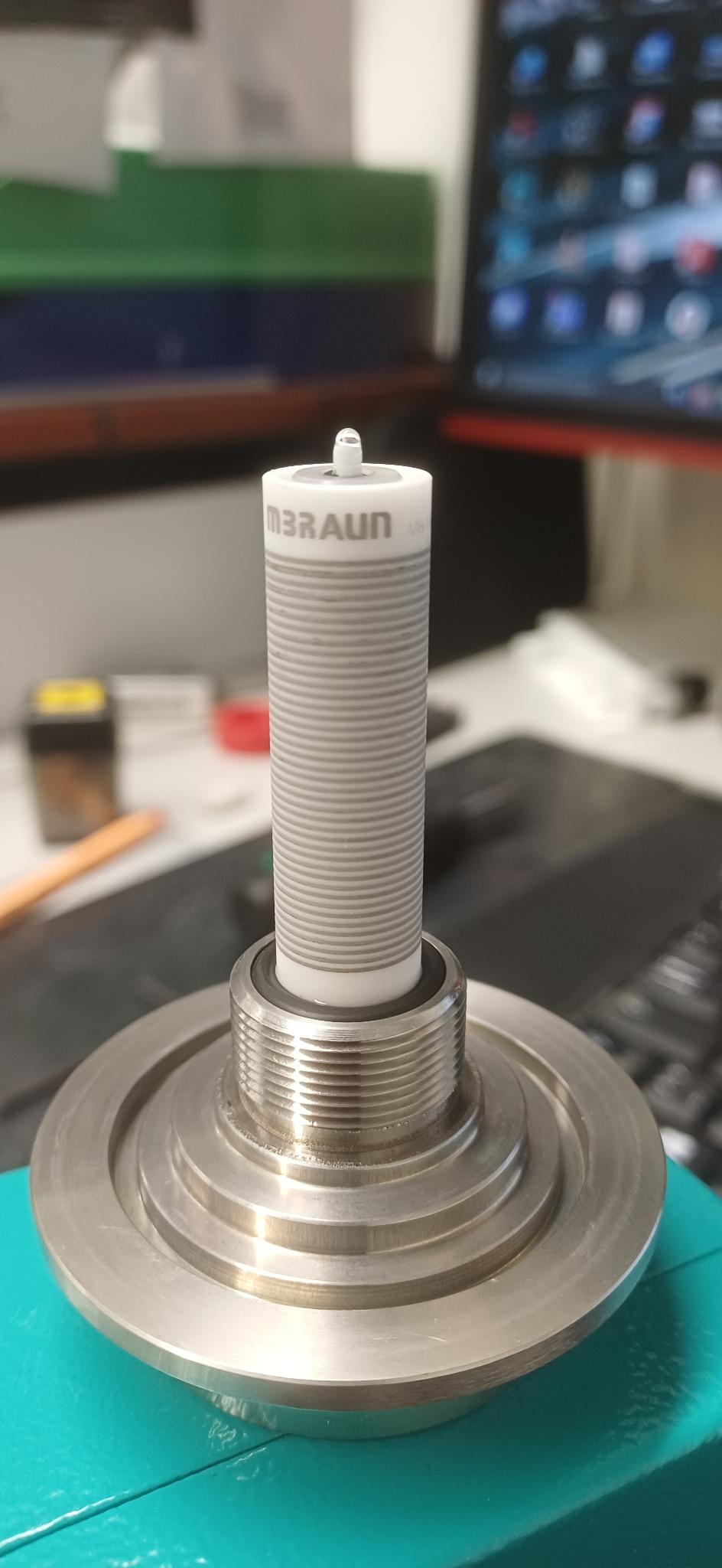 The most common type of moisture sensor used in glove boxes has a probe head covered with a layer of phosphoric acid. The phosphoric acid deteriorates over time, which is why it needs to be renewed regularly (approximately every 2,000 hours). One of the manufacturers has created an instructional video (external link) on how to do this. In short, the phosphoric acid must be rinsed off with distilled water. Then, after drying the probe head, it is impregnated again with new phosphoric acid.