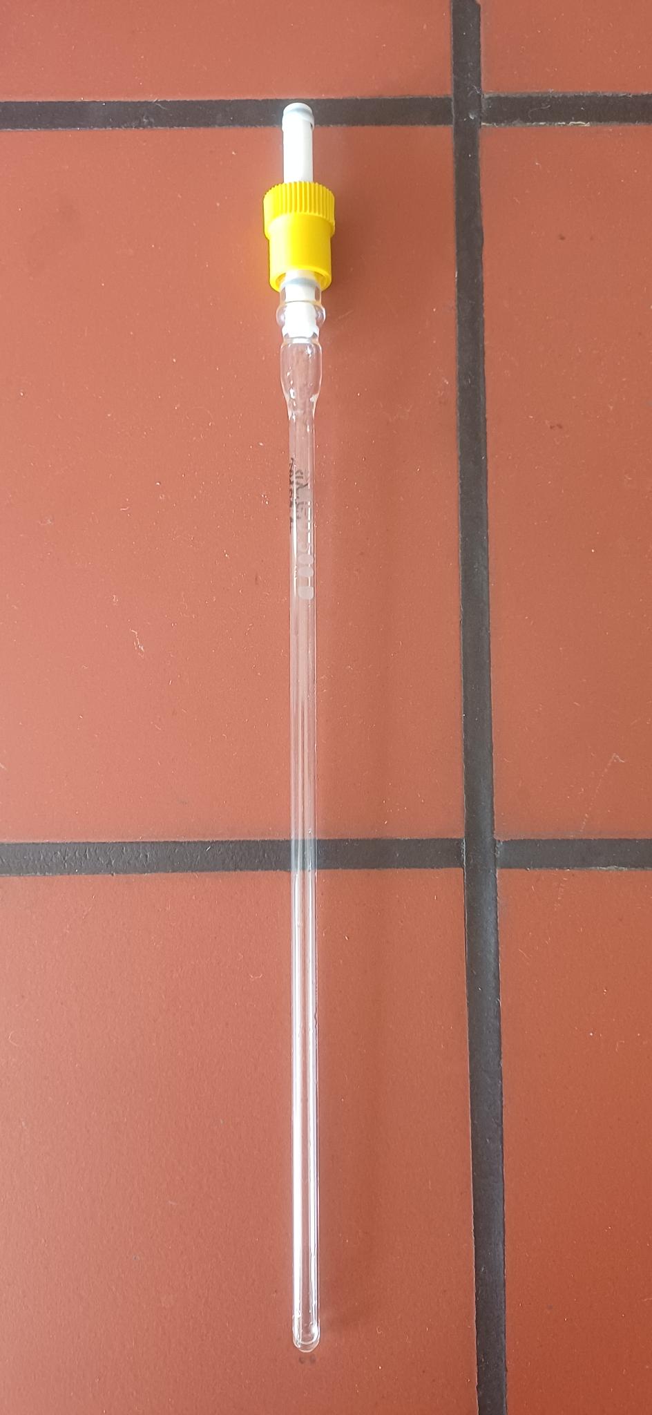 As with all PTFE caps and taps, they are properly tightened when a white ring is visible inside the glass (Figure 2). Tightening it further will not lead to a better seal, but rather increase the risk of damaging the glass. Also, keep the sealing surfaces clean of any powder to ensure proper sealing.
