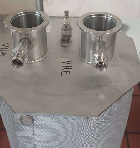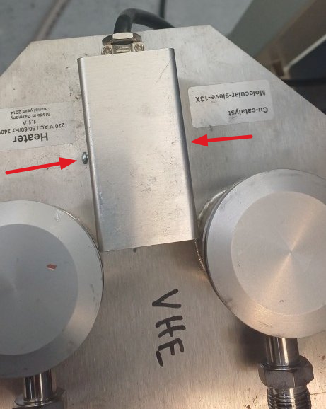 Next unscrew the two metal tubes next to the flanges at the reactor top (Figure 7). These tubes are needed for the regeneration process.