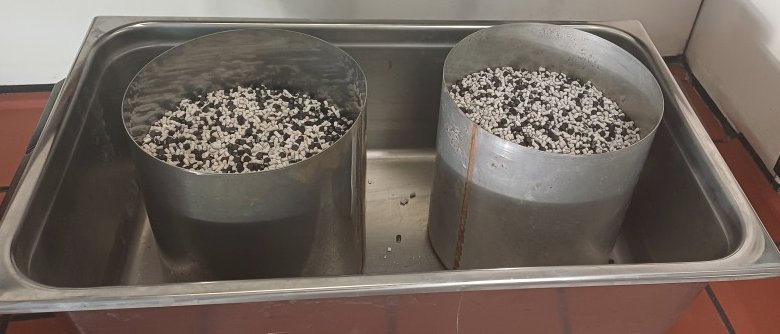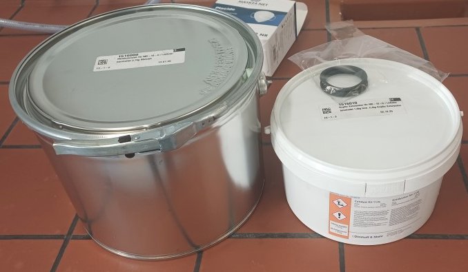 The dust created by pouring out the reactor loading is harmful so the reactor needs to be moved to a well ventilated area, preferably a fume hood or outside (Figure 10(a)). Additionally wear respiratory protection gear (e. g. FFP2 mask, Figure 10(b)). Important: Provide a heat resistant container to pour the reactor loading into (e. g. metal container / buckets, Figure 10(a)). Never dispose of it directly into the trash because the will be a fire hazard! Depending on the residual activity the reactor loading can generate quite a lot of heat when in contact with air. Thus the usage of a metal container.